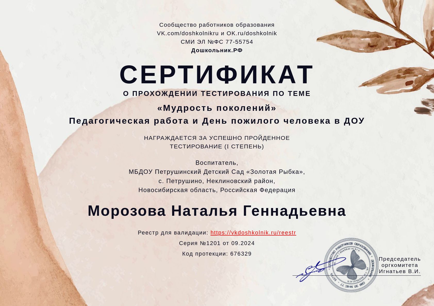 • Знания воспитателя о роли педагогической работы в рамках проведения мероприятий, посвящённых Дню пожилого человека в ДОУ;
